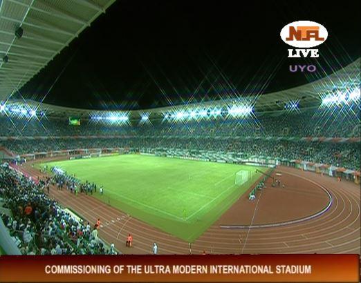 Happening now at Uyo Stadium: Pres Jonathan just commissioned the 30,000 capacity 'Nest of Champions' Uyo stadium